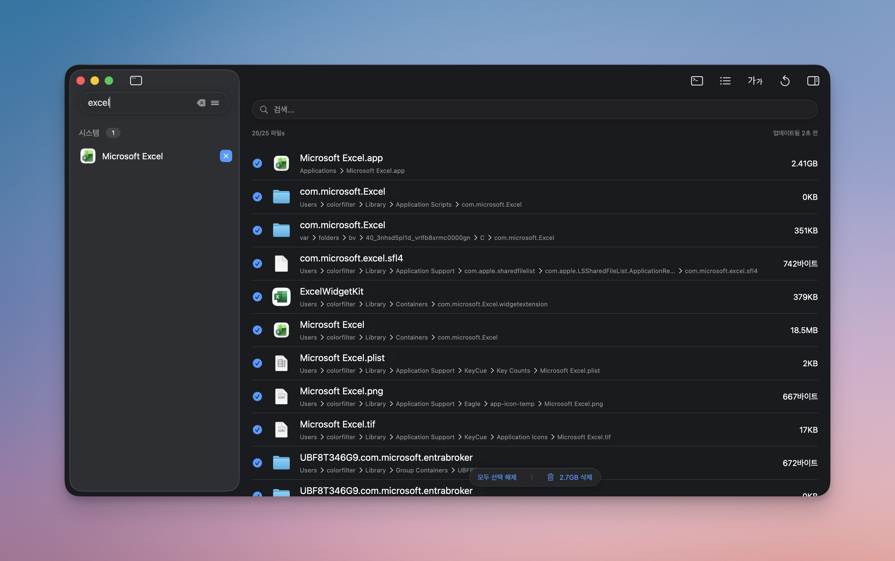 | 검색 민감도 | 엄격 | 앱 이름, 번들 ID 일치 등 가장 보수적인 기준으로 연관 파일 탐색 |