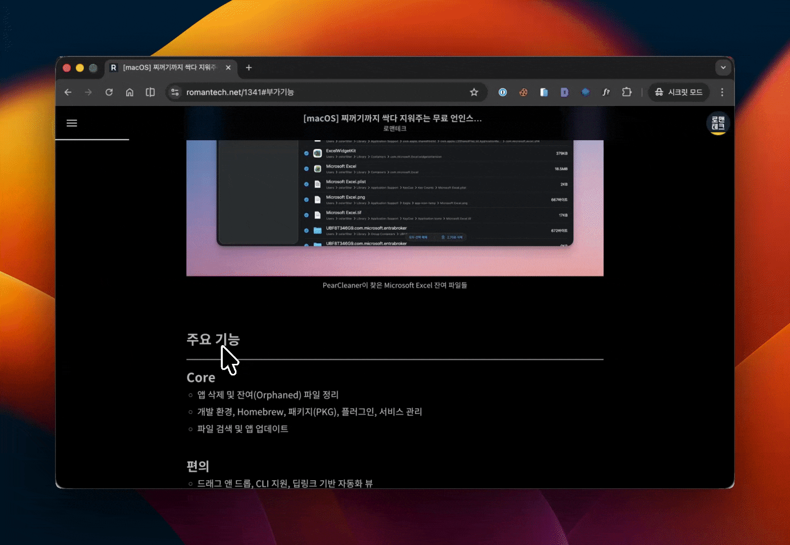 작동 방식은 크게 보면 그리 복잡하지 않다. 먼저 본문에 포함된 모든 제목을 찾은 뒤 고유한 해시를 생성한다. 생성된 앵커 링크(제목)를 클릭하거나 해시가 포함된 주소로 접속했을 땐 해당 위치로 자연스럽게 이동하도록 처리한다(scroll-behavior: smooth 적용).
