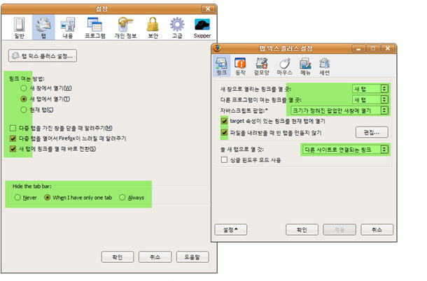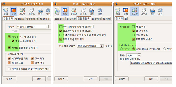 탭 브라우징 도우미 확장기능입니다. 마우스 제스처와 함께 이 확장기능이 없으면 파이어폭스 사용이 너무 불편해집니다. 탭에 관한 필수 기능은 거의 다 들어있기 때문에 다른 탭 관련 확장기능은 웬만해서 설치하지 않습니다.