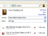 나중에 다시 읽을 목적으로 웹페이지를 잠시 저장하는 목적의 서비스인데요. 이미 마가린이나 딜리셔스 같은 소셜 서비스나 폭스마크 같은 동기화 서비스 등 여러 가지 북마크 솔루션이 많이 있지만.. Read It Later는 파이어폭스 3의 북마크 시스템과 잘 연동하면서 여러 가지 유용한 기능들을 제공해 줍니다.