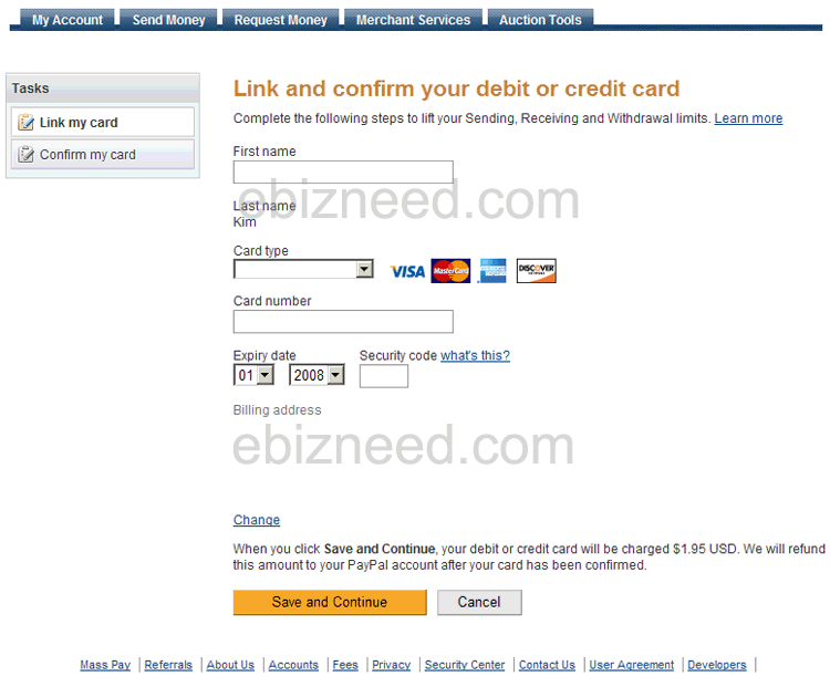 ๋ ฅํ์๊ณ ์ค๋์ง์์ "Save and Continue"๋ฅผ ๋๋ฅด์ธ์. ํ์ดํ์์ ์นด๋๋ก $1.95์ด ์