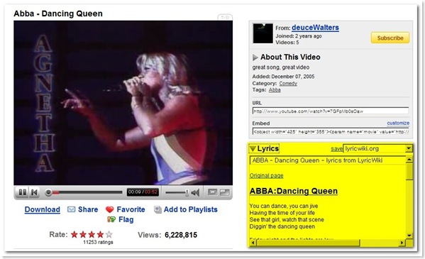 Youtube로 뮤직 비디오를 볼 때 가사를 자동으로 출력해 주는 Greasemonkey 스크립트입니다. 해당 스크립트를 설치하면 Youtube 화면 오른쪽에 Lyrics라는 항목이 새로 추가됩니다