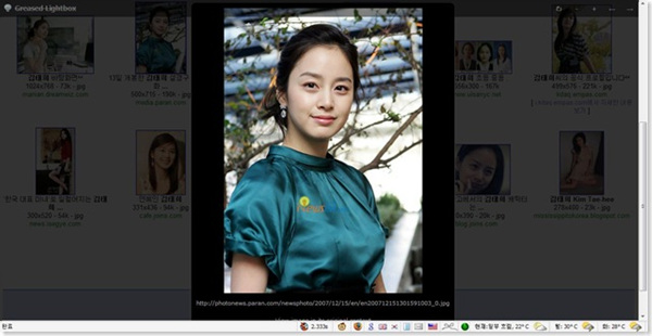 Lightbox 스크립트에서 화살표 버튼으로 검색결과의 이미지를 훑어볼 수 있습니다. 확대/축소도 자유롭습니다. ▼