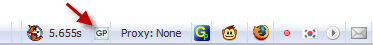 설치를 완료하시면 하단 상태표시줄에 GP라는 아이콘이 생깁니다. 이 버튼을 클릭하면 손쉽게 프로그램을 활성화시키거나 비활성화시킬 수 있습니다. 구글 및 야후를 이용하시는 분들께는 괜찮은 부가기능 같네요.