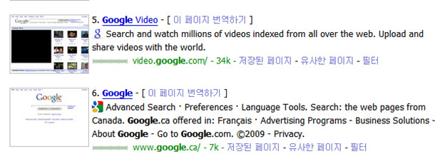 그리스몽키의 Google Kingkong 스크립트 역시 섬네일 미리 보기 기능이 포함되어 있습니다. 파이어폭스가 무거워져 부가기능 설치를 원하지 않는 분들은 이 스크립트로 해결이 가능합니다 =)