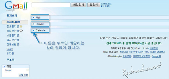 Show Collapsible Calendar and Reader — Gmail 첫 화면에 구글캘린더/리더를 한 번에 볼 수 있게 해 줍니다.