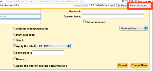 Filter Assistant — 메시지와 연관된 필터를 추가, 관리할 수 있습니다.