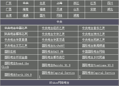 ๋ผ๋์ค ํ์ด์ง์ ์ฒซ ํ๋ฉด์ ๋๋ค. ๅนฟไธ(๊ด๋), ๅไบฌ(๋ฒ ์ด์ง), ไธๆตท(์ํ์ด), ๅฐๆนพ(๋๋ง), ๆธฏๆพณ(ํ์ฝฉ, ๋ง์นด์ค), ๅฝๅค(ํด์ธ) ๋ฑ ์ง์ญ๋ณ๋ก ๋๋์ด ์์ต๋๋ค. ๅฝๅค ๋ถ๋ถ์ ํ๊ตญ, ์ผ๋ณธ๋ ์๋ค์. ์ ๋์ค๋ ๊ฒ๋ค๋ ๋ช ๊ฐ ์์ต๋๋ค. ็ฝ็ป ๋ถ๋ถ์ ๊ฐ์ธ ์ธํฐ๋ท๋ผ๋์ค ๋ฐฉ์ก๋ค์ ๋๋ค. ์์ ์์ฃผ๋ก ํด์ธ๋ฐฉ์ก๋ค์ด ๋ง๋ค์. Alternative Rock , Indie Rock , Classic Rap ๋ฑ ๋ค์ํฉ๋๋ค.