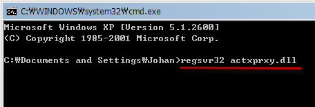 regsvr32 actxprxy.dll입력 - 컴퓨터 다시 시작