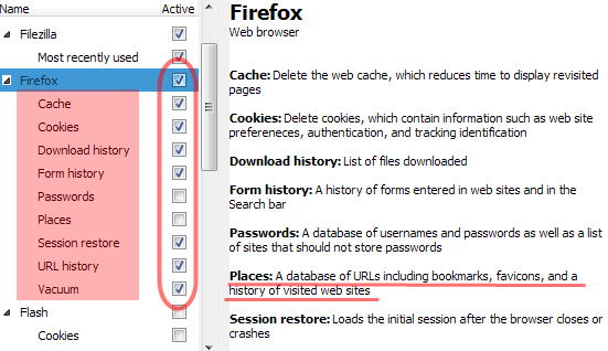 ▲ Firefox 항목에서 정리하고 싶은 부분을 선택하여 주시면 되는데요, Places 항목을 선택하면 저장해놓은 북마크를 다 지워버릴 수도 있으니, 가급적 체크 해제 하여 사용하시길 바랍니다. 기타 SQLite3 명령 프롬포트 사용방법 등의 내용은 웹초보님의 "데이터베이스 최적화로 파이어폭스 빠르게 하기" 포스팅을 참고하세요~