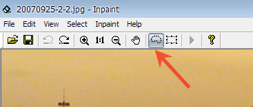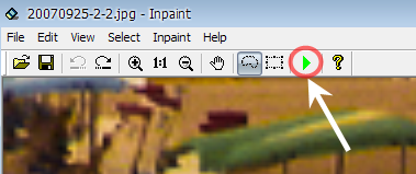 제거를 원하는 부분을 모두 선택한 후 상단에 화살표 모양이 가리키는 곳을 클릭하시면 Inpaint 프로그램이 친절하게 자동으로 해당 부분을 제거하여 줍니다. 자 그럼 수정 전후를 비교해 볼까요? ▼