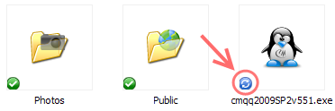 저는 cmqq2009 sp2v551.exe라는 파일을 드래그하여 복사해봤습니다. 그럼 동그라미 부분처럼 전송 중이라는 표시가 뜹니다. 체크 모양이 나오면 업로드가 완료되어 싱크되었다는 의미입니다.