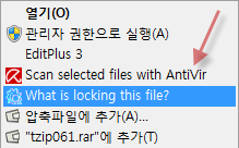 사용법은 Unlocker와 비슷하게 매우 간단합니다. 일단 프로그램 설치 후 탐색기에서 임의에 폴더나 파일을 클릭후 마우스 오른쪽 버튼을 누르면 탐색기 문맥 메뉴에 what is Locking this File?라는 항목이 생깁니다. 해당 메뉴를 클릭합니다.