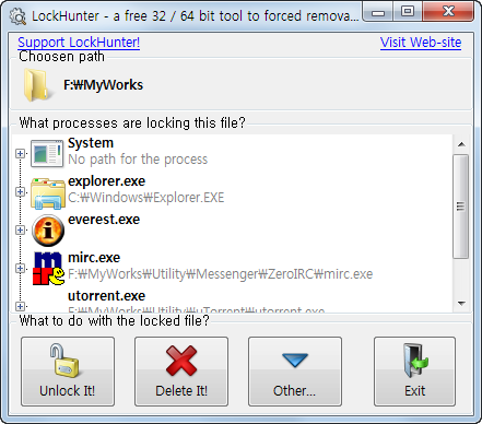 윈도우에서 삭제 안되는 파일, 폴더 지우기 - LockHunter