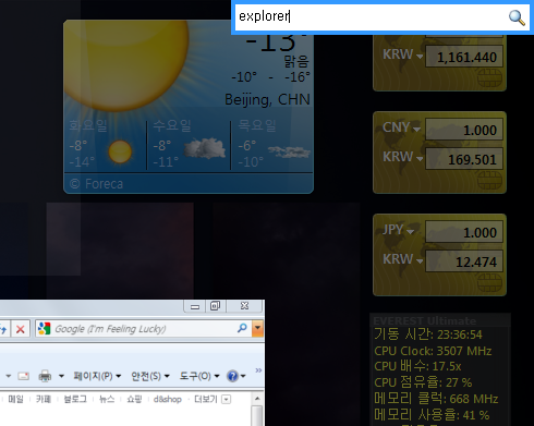 마지막으로... 열려 있는 프로그램들이 너무 많아 분할된 화면에서 찾기가 곤란한 경우 키보드로 프로그램 이름을 타이핑하면 오른쪽 상단에 Search Box가 자동으로 나타나 입력한 프로그램을 활성화시켜 줍니다. ▼