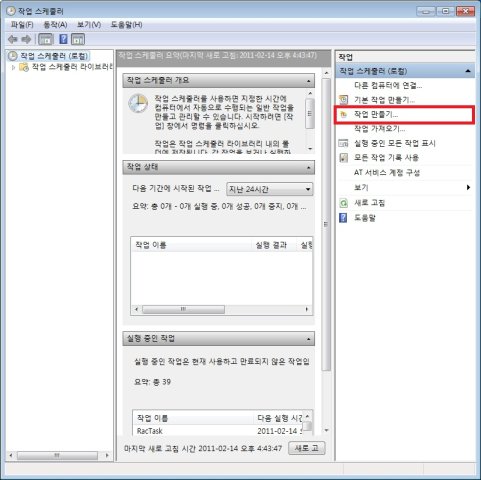 2. 작업 스케줄러가 실행되면 오른쪽의 작업 창에서 작업 만들기를 선택합니다.