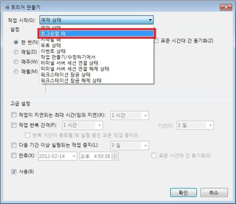 5. 작업 시작(G)에서 로그온 할 때를 선택합니다.