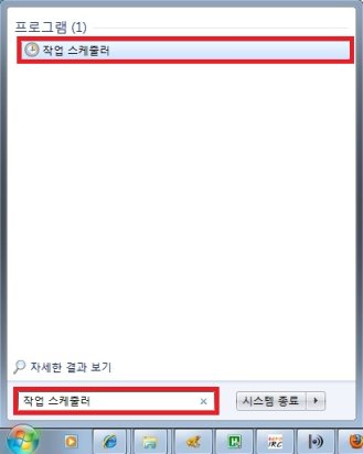 1. 시작 메뉴의 검색 상자에 작업 스케줄러를 입력해 작업 스케줄러를 실행합니다. (또는 제어판으로 들어가셔서 실행하셔도 무방합니다.)