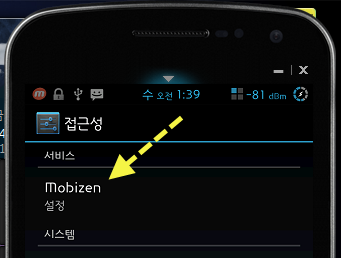 🔎 먼저 PC 모비즌에서 설정 -> 일반 설정 -> 알림 부분에 On을 체크합니다. 그 후 스마트폰에서 설정 -> 접근성으로 가시면 서비스 항목 밑에 Mobizen이 보입니다. 이 부분을 On으로 바꿔주시면 됩니다.