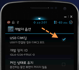 🔎 설치하시기 전 자신의 스마트폰에서 설정 -> 개발자 옵션으로 가신 뒤 USB 디버깅 모드에 체크(활성)해주세요. 갤럭시 노트의 경우엔 환경설정 -> 위치 및 보안 -> USB 디버깅 모드 해제에서 체크 해제해줍니다.