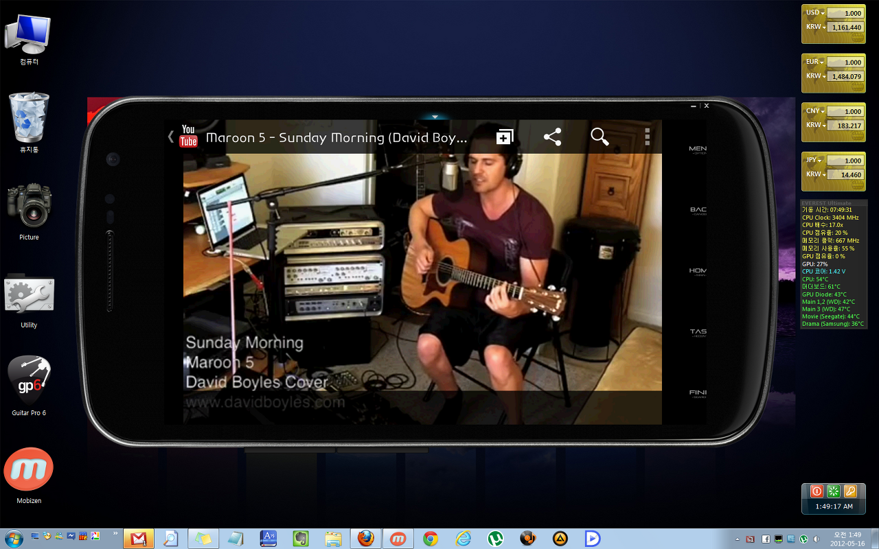 🔥 유튜브 동영상을 실행해봤습니다. 원격이라 그런지 약간 끊기긴 하지만 화질도 괜찮고 깔끔하게 잘 플레이됩니다. 스마트폰을 가로로 기울여 놓으면 PC상의 화면도 자동으로 가로모드로 변합니다!! 와우
