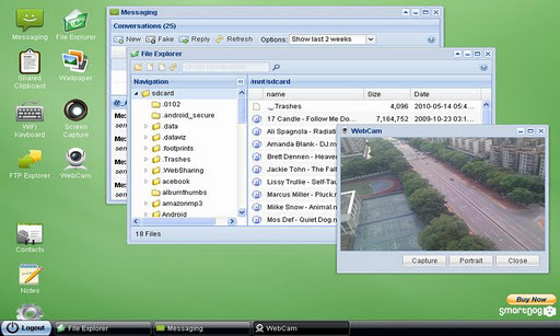 안녕하세요. 오늘도 어제 포스팅한 "[강추] PC에서 카카토톡은 물론 원격조종까지 모든 것을 - 모비즌"과 비슷한 유형의 애플리케이션을 소개합니다. 컴퓨터 데스크톱에서 스마트폰을 컨트롤하는 모티브는 비슷하지만 오늘 소개해드릴 Remote Web Desktop이라는 어플은 와이파이 키보드나 스마트폰의 카메라를 웹캠으로 이용하는 기능 등이 강점입니다. 카카오톡 같은 어플을 직접 구동하여 조작할 수는 없지만 기본 SMS 메시지를 대화형식으로 보내거나 받을 수 있습니다. 크게 보면 모비즌이 기능이 훨씬 많습니다만 간단하게 스마트폰 안에 있는 파일이나, 연락처, SMS를 관리하고 싶을 때 유용하겠네요.