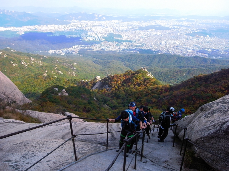 ์์ธ์ ์ฃผ์ฐ์ธ ๋ถํ์ฐ! ์ ๋ฒ์ฃผ์ ๋น๋ด - ํฅ๋ก๋ด ์ฝ์ค๋ฅผ ๋ค๋ ์์ ์ด๋ฒ์ฃผ์ ๋ถํ์ฐ์์ ๊ฐ์ฅ ๋์ 836m์ ๋ฐฑ์ด๋๋ฅผ ๋์ ํ๋ค. ์ง๋๋ฅผ ๋ณด๋ ๋ถํ์ฐ์ ์์ธ์ ๋ฌผ๋ก ๊ฒฝ๊ธฐ๋, ๋๋ด์ฐ๊ณผ ์ด์ด์ ธ ์๋ ๋ฑ ์๋นํ ๋์ ์ง์ญ์ ํฌํจํ๊ณ ์์ด 1๋ ๋์ ๋ถํ์ฐ๋ง ๋ฑ๋ฐํด๋ ๋ชจ์๋ฅผ ๊ฒ ๊ฐ์ ๋๋์ด ๋ค์๋ค. ์๋ ์ฐ๋ฆฌ์ ๊ณํ์ ๋์ ์ฌ์ฃผ์ฐจ์ฅ-(30๋ถ)-ํ๋ฃจ์ฌ-(5๋ถ)-์ธ์๋ํผ์ -(30๋ถ)- ๋ฐฑ์ด๋ํผ์ -(10๋ถ)- ์๋ฌธ-(15๋ถ)-๋ฐฑ์ด๋-์๋ฌธ-์ฉ์๋ฌธ-๋๋๋ฌธ-์ง๋ฌ๋๋ฅ์ ๋๋ ์๊ท์ฒ๊ณ๊ณก-์ฐ์ด๋ 120 ๋ฒ ์ข ์ ์ผ๋ก ์ค๋ ๊ฒ์ด์์ผ๋ ์ค๊ฐ์ ์ฝ์ค๋ฅผ ๋ณ๊ฒฝํด ์๋์น์๊ฒ ๊ฒฐ๊ณผ์ ์ผ๋ก ๊ตฌํ๋ฐ์ญ ์ชฝ์ ๋ถํ์ฐ ๊ตญ๋ฆฝ๊ณต์ ์ชฝ์ผ๋ก ๋์ค๊ฒ ๋...;; ์ด ๊ฑฐ๋ฆฌ๋ 10KM ์ ๋ ๊ฑท๊ฒ ๋์๋ค.