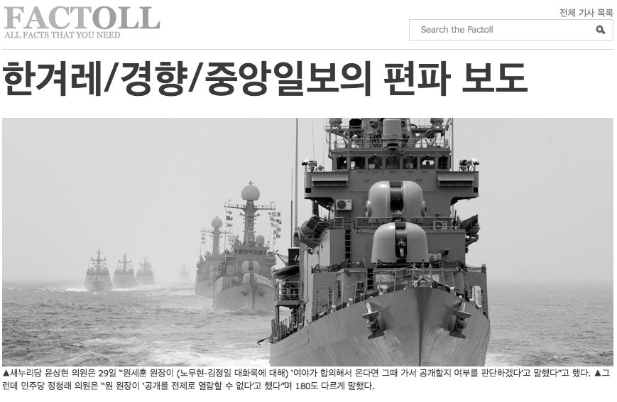 오늘 소개해드릴 사이트는 FACTOLL이라는 사이트입니다. 국내 주요 일간지에서 근무했던 현직 기자들이 모여 만들어진 비영리 사이트입니다. 쏟아지는 정보들, 넘쳐나는 기사들… 이제 맹목적인 정보 습득이 아닌 본인의 필터링을 통해 넘쳐나는 정보를 걸러내야 합니다. FACTOLL은 이러한 역할을 대신 수행해주는 사이트입니다. 사실인 것과 사실이 아닌 것을 엄격하게 구분해야 된다는 소신을 가지고 통일, 외교, 국방 문제와 관련된 내용은 확실한 안보관을 피력하고 재벌들의 권력형 비리나 인권문제 언론의 부도덕한 행위에 대해서는 날카로운 지적과 비판을 서슴지 않습니다.