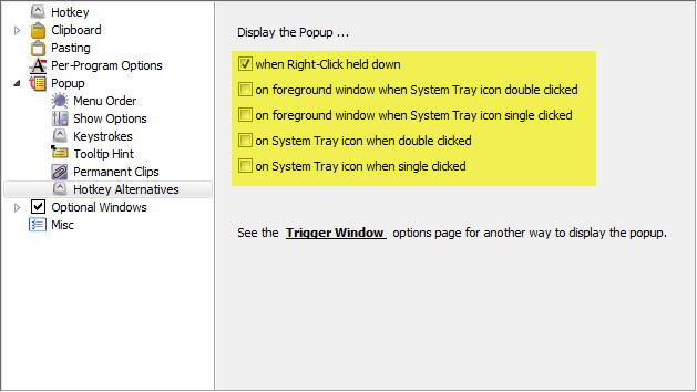 위에서 설정했던 팝업창 단축키를 매번 필요할 때마다 누르기가 귀찮으신 분은 when Right-Click held down 항목에 체크하시어 마우스 우클릭을 꾸욱 눌러서 팝업창을 불러올 수 있습니다.