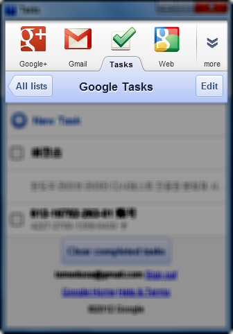 ▽ 사용법은 홈페이지에 접속 후 Adobe air를 설치하고 Google Tasks 링크를 클릭하면 자동으로 설치- 실행됩니다. New Task를 눌러 새로운 할 일을 추가할 수 있고 완료된 할 일 제거 버튼을 눌러서 제거할 수도 있습니다. 할 일 목록마다 기한이나 메모 등도 추가할 수 있습니다. 모바일 버전을 데스크톱에 구현하여 만든 것이기 때문에 스마트폰을 많이 쓰는 요즘 이질 감 없이 간편하게 이용할 수 있어 좋네요.