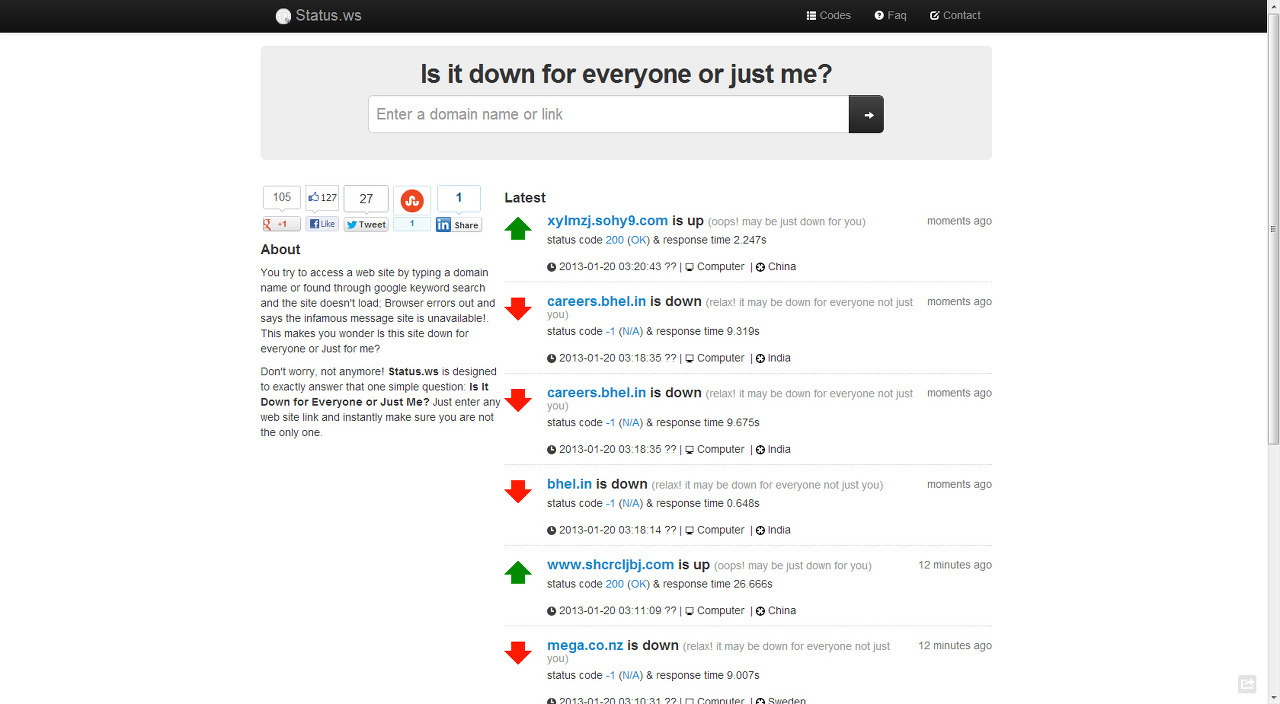 status라는 사이트인데 트래커는 물론 사이트 접속 가능여부를 확인해 주는 곳입니다. 비공개 트래커는 레이쇼와 각종 룰이 적용되어 밴을 당하는 경우가 자주 있습니다. 혹시나 자기가 소홀이 관리한 비공개 트래커가 갑자기 접속이 안될 때면 설마 영구 밴을 당한 것인가 하고 겁을(?) 먹곤 합니다. 이럴 때 status는 비공개 트래커 유저들에게 은근히 유용하게 쓰일 사이트입니다.
