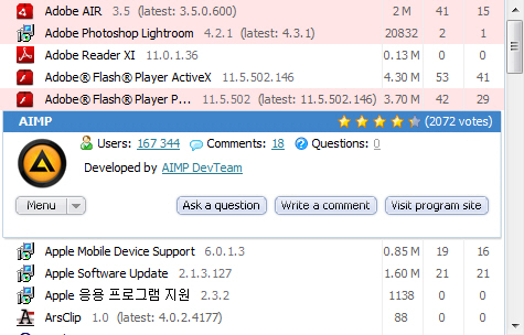 □ 프로그램 목록에서 이름을 클릭하면 사용하고 있는 유저의 수와(Software Informer 기준), 사용자 평가, 코멘트 등을 확인할 수 있습니다.