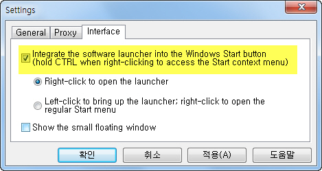 □ Software Informer는 프로그램 업데이트 체크 기능 외에 시작프로그램을 마우스로 우클릭 시 설치된 프로그램의 아이콘을 보기 쉽게 표시해줘 실행하고자 하는 프로그램으로의 접근을 용이하게 도와주는 기능이 포함되어 있습니다. 한정된 작업표시줄의 표시 영역으로 요 기능도 은근히 유용하게 쓰일 듯싶습니다. 설정은 위 그림 노란색 하이라이트 부분을 클릭하시면 적용됩니다.