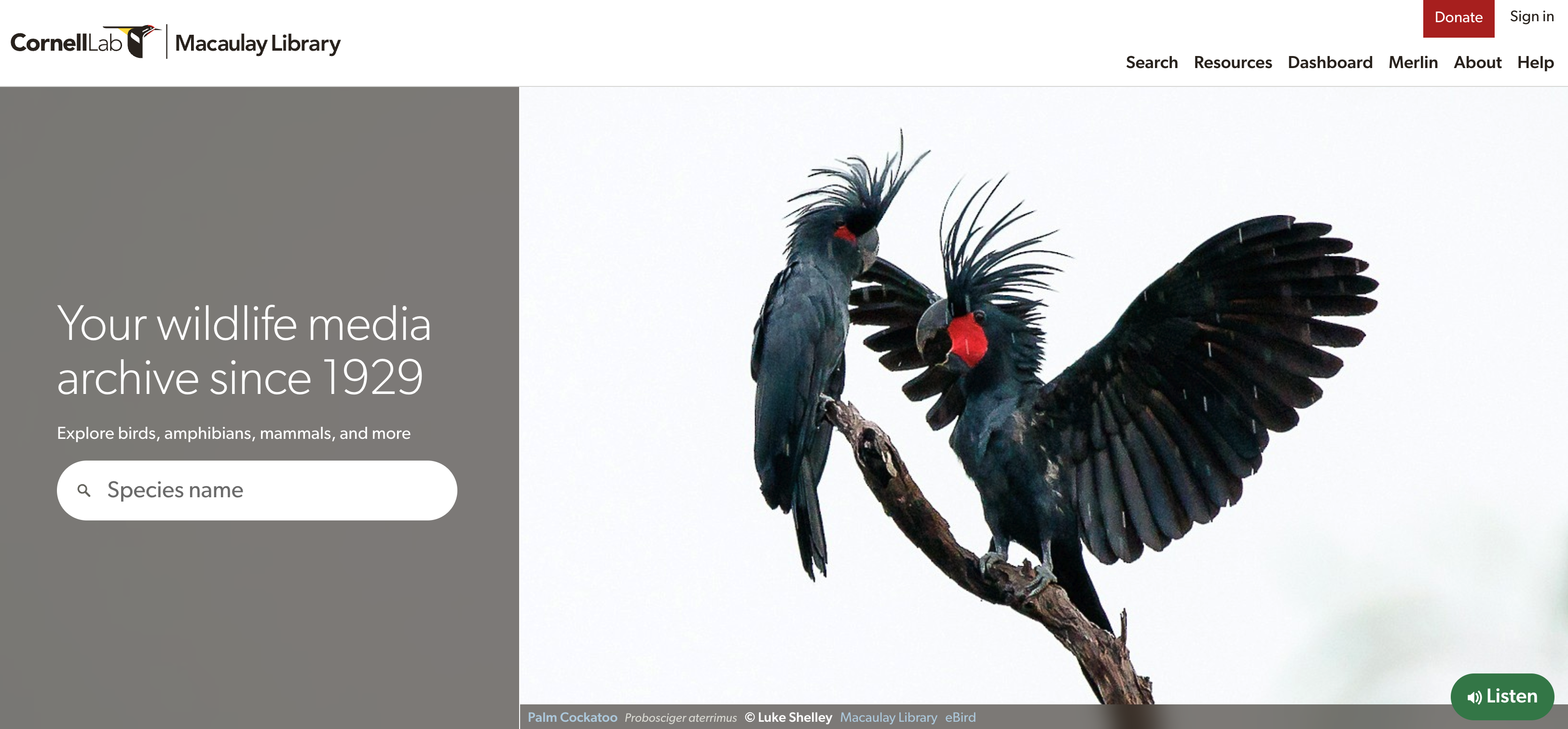얼마 전 미국 코넬대학의 조류 학연 연구소(Cornell Lab of Ornithology)의 마코레이 도서관(Macaulay Library)이 소장하고 있는 9천여 개체의 다양한 희귀종 울음소리 녹음본을 디지털화하여 일반인에게 공개했네요. 이 동물들의 울음소리는 1929년부터 현재까지 수집되어 모두 약 15만 점에 달합니다. 조류나 각종 희귀종을 연구하시거나 관심 있으신 일반인들에게 유용한 사이트가 될 것 같네요.
