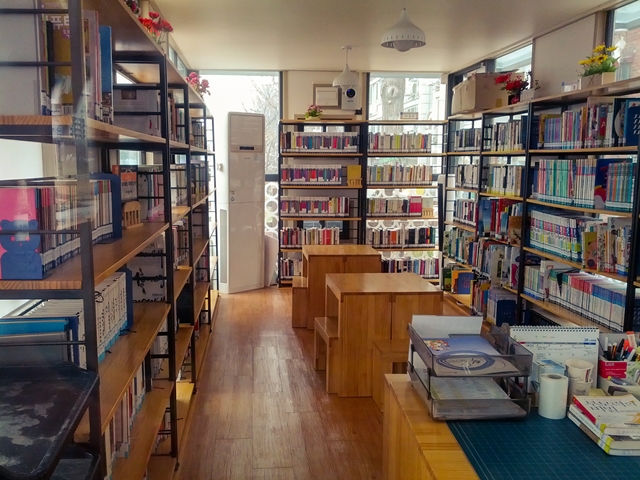 ์ง ์์ ๋ถ๊ด์ฒ์ด ์๋๋ฐ ๋งค์ผ๊ฐ์ด ์งํ์ฒ ์ญ์ ์ง๋๊ฐ๋ค๋ณด๋ฉด ๋นจ๊ฐ์ ์ปจํ ์ด๋ ๋ฐ์ค๊ฐ ํญ์ ๋์ ๋์๋ค. ์ค๋ ๊ธฐํ๊ฐ ์๊ฒจ ๊ฐ๊น์ด์๋ณด๋ ์ ์ปจํ ์ด๋ ๋ฐ์ค์์ ๊ฝค ๋ง์ ์ข ๋ฅ์ ์ฑ ๋ค์ด ๊ฝํ์ ธ ์๋๊ฒ์ด ์๋๊ฐ! ์ปจํ ์ด๋ ์ปจ์ ์ผ๋ก ์ด์ํ๋ ์ปคํผ์(?)์ผ๋ก ์์ํ๋๋ฐ, ์๊ณ ๋ณด๋ ์์ ์ ๋ณด๋์๊ด์์ ์ง์ญ ์ฃผ๋ฏผ๋ค์ ์ํด '๋ถ๊ด์ฒ ์์ ๋์๊ด'์ด๋ผ๋ ์ด๋ฆ์ผ๋ก ๋์ ๋์ถ ์๋น์ค๋ฅผ ํ๊ณ ์์๋ค. 7ํ ์ ๋์ ํฌ๊ธฐ์ 3400์ฌ๊ถ์ ๊ฝค ๋ง์ ์ฑ ๋ค์ด ์๊ณ , ๋ฐ๋ก์์ ๋ถ๊ด์ฒ์ด ๋ณด์ฌ ์ฒญ๋ฅ์ค๋ฆฌ๋ค์ ๋ณด๋ฉฐ ํ๊ฐ๋ก์ด ์ฑ ์ ์ฝ์ ์ ์๋ ์์คํ ๊ณต๊ฐ์ด๋ค.