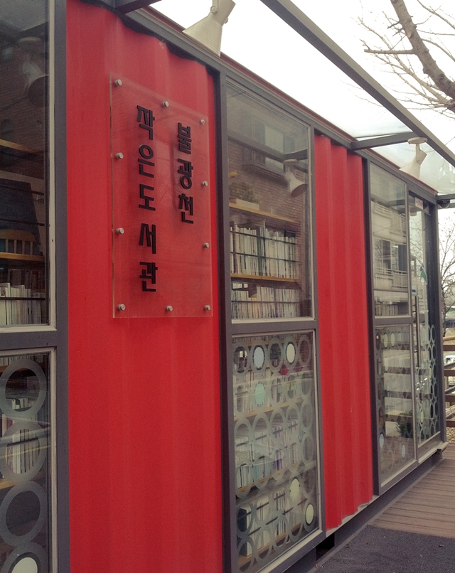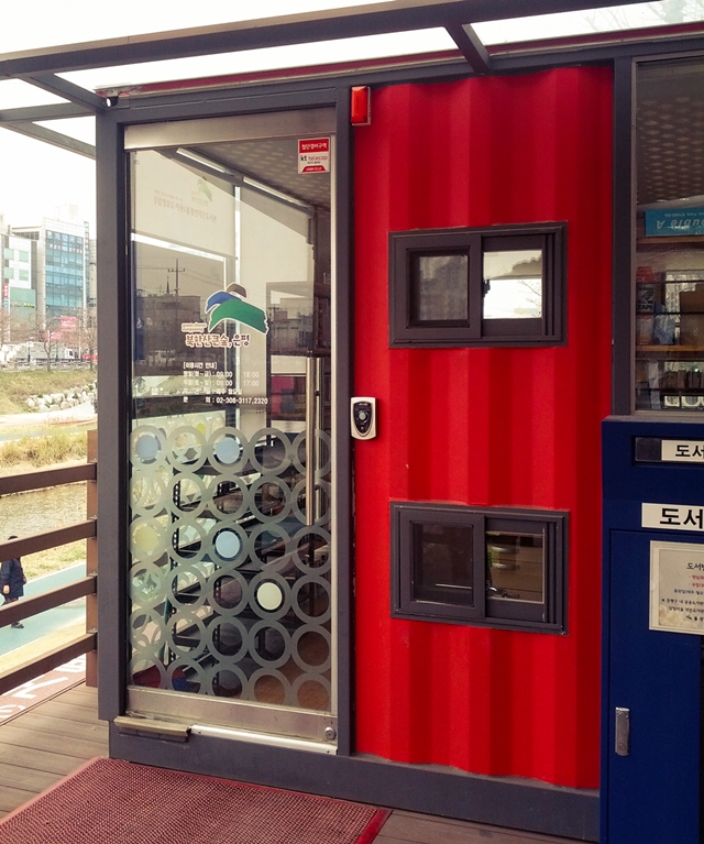 ์ง ์์ ๋ถ๊ด์ฒ์ด ์๋๋ฐ ๋งค์ผ๊ฐ์ด ์งํ์ฒ ์ญ์ ์ง๋๊ฐ๋ค๋ณด๋ฉด ๋นจ๊ฐ์ ์ปจํ ์ด๋ ๋ฐ์ค๊ฐ ํญ์ ๋์ ๋์๋ค. ์ค๋ ๊ธฐํ๊ฐ ์๊ฒจ ๊ฐ๊น์ด์๋ณด๋ ์ ์ปจํ ์ด๋ ๋ฐ์ค์์ ๊ฝค ๋ง์ ์ข ๋ฅ์ ์ฑ ๋ค์ด ๊ฝํ์ ธ ์๋๊ฒ์ด ์๋๊ฐ! ์ปจํ ์ด๋ ์ปจ์ ์ผ๋ก ์ด์ํ๋ ์ปคํผ์(?)์ผ๋ก ์์ํ๋๋ฐ, ์๊ณ ๋ณด๋ ์์ ์ ๋ณด๋์๊ด์์ ์ง์ญ ์ฃผ๋ฏผ๋ค์ ์ํด '๋ถ๊ด์ฒ ์์ ๋์๊ด'์ด๋ผ๋ ์ด๋ฆ์ผ๋ก ๋์ ๋์ถ ์๋น์ค๋ฅผ ํ๊ณ ์์๋ค. 7ํ ์ ๋์ ํฌ๊ธฐ์ 3400์ฌ๊ถ์ ๊ฝค ๋ง์ ์ฑ ๋ค์ด ์๊ณ , ๋ฐ๋ก์์ ๋ถ๊ด์ฒ์ด ๋ณด์ฌ ์ฒญ๋ฅ์ค๋ฆฌ๋ค์ ๋ณด๋ฉฐ ํ๊ฐ๋ก์ด ์ฑ ์ ์ฝ์ ์ ์๋ ์์คํ ๊ณต๊ฐ์ด๋ค.