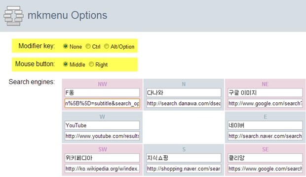 [강력추천] 마우스 드래그로 여러 사이트를 검색하는 - mkmenu