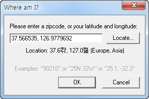 그 후 Set Your Location 부분에 Chage 버튼을 눌러 지역을 설정해주어야 합니다. 살고 계신 곳을 영문(Seoul)으로 입력하시고 Locate 버튼을 눌러주세요.