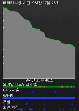 Pure 트윅을 적용하고 하루정도 사용한 배터리 소모 그래프입니다. 와이파이, GPS를 모두 켜놓고 사용했지만 9시간을 사용하고도 40% 정도가 남았습니다. 대기 배터리, 속도 향상, 안정성 모두 만족입니다. 이로서 제 갤럭시 넥서스의 수명은 더욱더 늘어나게 되었습니다.