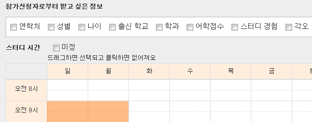 '스터디 서치' 사이트에선 스터디 모집글들을 종합적으로 찾아볼 수 있을 뿐만 아니라 스터디 모집 또한 가능합니다. 시간대, 참가자에게 요구되는 정보, 카테고리 등 기본적인 내용을 기입할 수 있습니다. 또한 서울 지역의 경우 장소까지 추천해주는 등 그룹 스터디와 관련한 여러 세부적인 정보들을 얻어가실 수 있습니다. 스터디 구하시는 분들께 강추하는 사이트입니다..^^