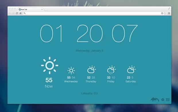 시간, 날짜 그리고 날씨로만 구성된 심플한 새 탭 페이지입니다. 큼지막한 시계와 한 주의 일기 예보를 볼 수 있으며 배경 색상과 일기예보 지역 변경이 가능합니다. 이것저것 설정하기 귀찮으신 분들에게 추천하는 깔끔한 새 탭 페이지.