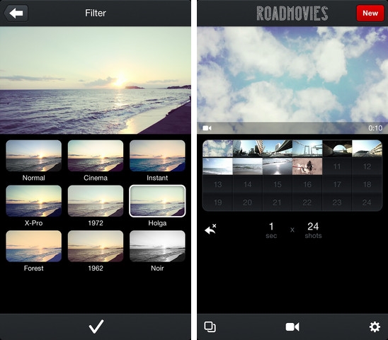 ์ฑ์คํ ์ด์ RoadMovies๋ ์ฑ์ด ์๋ค. ์ค๊ฐ์ค๊ฐ ์ฐ์ด๋ ํด๋ฆฝ์ ๋ถ์ฌ์ ๋ก๋ชจ ์คํ์ผ ๊ฐ์ ๊ทธ๋ด์ธํ ๋ถ์๊ธฐ์ ์์์ ๋ง๋ค ์ ์๋ค. ๊ฒฐ๊ณผ๋ฌผ ์ญ์ ํํฐ ํจ๊ณผ ๋๋ถ์ธ์ง ์๊ฐ ํฌ์ ๋๋น ๋ง์กฑ์ค๋ฝ๋ค. ์ฌ์ฉ๋ฒ๋ ๊ฐ๋จํ๋ค. ๊ธฐ๋ณธ, ์๋ค๋ง, ์ธ์คํดํธ ๋ฑ 9๊ฐ์ง ์์ ํจ๊ณผ๋ฅผ ์ค ์ ์๊ณ ์ฑ ์์ฒด์ ์ผ๋ก ๋ด์ฅ๋์ด ์๋ 10์ฌ ๊ฐ์ง์ ์์