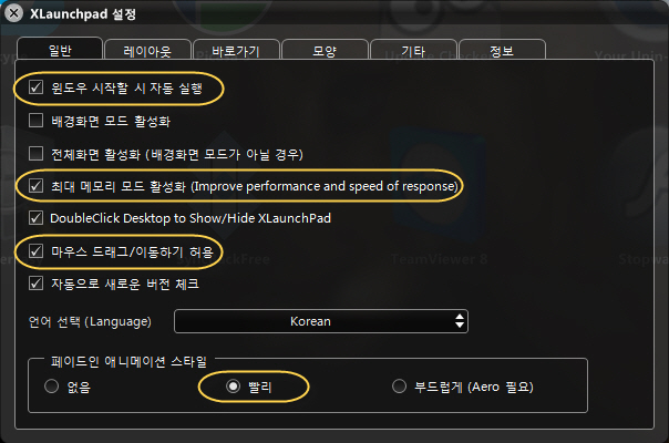 - 최대 메모리 모드 활성화 : 메모리가 4GB 이상이어서 넉넉하시다면 체크하셔서 더욱 부드러운 런치패드 구동이 가능합니다.