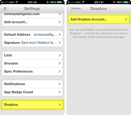 클라우드 서비스의 원조인 Dropbox의 무료 제공량은 2GB로 Google Drive, Ndrive, Daum Cloud 등에 비해 많이 부족합니다. 하지만 범용성이 좋아 타 어플과의 연동 때문에 가장 많이 사용하게 되는 돼요. 드롭박스는 기본 용량이 적은 대신 추천인 링크나 각종 이벤트 등 용량을 추가할 수 있는 루트가 매우 많습니다. 오늘은 스와이프 형식으로 효과적인 메일 관리를 할 수 있는 아이폰 이메일 관리 앱 메일박스(Mailbox)에 드롭박스 계정을 연동하기만 하면 1GB 추가 용량을 제공하는 이벤트를 소개해볼까 합니다.