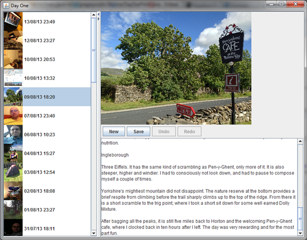 Day One은 아이폰/아이패드를 모두 지원하는 유니버설 앱에다 공식 맥용 애플리케이션까지 있지만, 윈도우 용은 개발은커녕 계획조차 없어 대다수 국내 유저들이 안타까워하기도 합니다. 그래서 오늘은 외국의 어느 한 개발자분이 만든 비공식 Day One 프로그램을 소개해볼까 합니다. 공식 맥용 애플리케이션에 비하면 기능, 디자인 등 여러모로 부족한 점이 많지만 데스크톱에서 확인할 수 있다는 것만으로도 감사(?)해야 되겠습니다.