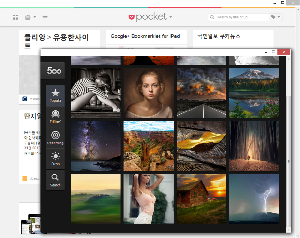 Pocket과 500px 앱을 실행해 보았습니다. 반응 속도가 무거워진 크롬의 브라우저와는 달리 매우 빠릅니다. 저는 간단한 사진 편집이나 리사이징은 포토스케이프를 사용하는 편인데, 앱 런쳐를 지원하는 Pixlr을 이용해 보니 앞으로 포토스케이프를 사용할 일이 줄어들 것 같습니다.