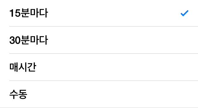 📌 설정 - Mail, 연락처, 캘린더 - 데이터 업데이트에서 원하시는 설정을 선택하시면 됩니다.