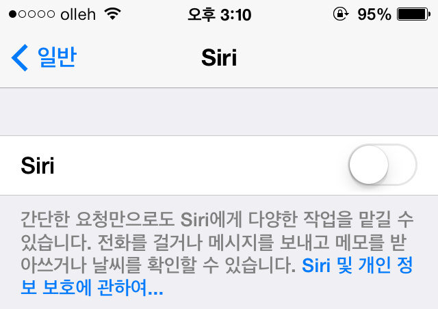 5. 시리(SIRI) 사용이 적다면 꺼두기