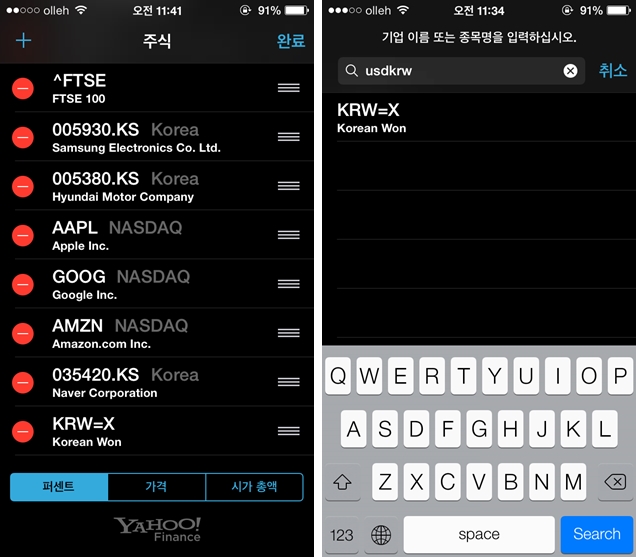 아이폰 알림 센터에서 기본적으로 국내외 주식 종목들의 가격, 상승폭, 시가 총액 등을 확인할 수 있습니다. 저 같은 경우 이와 주식과 더불어 환율을 자주 확인하는 편인데요, 아이폰 알림 센터에서도 간단한 코드 입력으로 환율이나 금값/은값 정보를 확인할 수 있습니다.