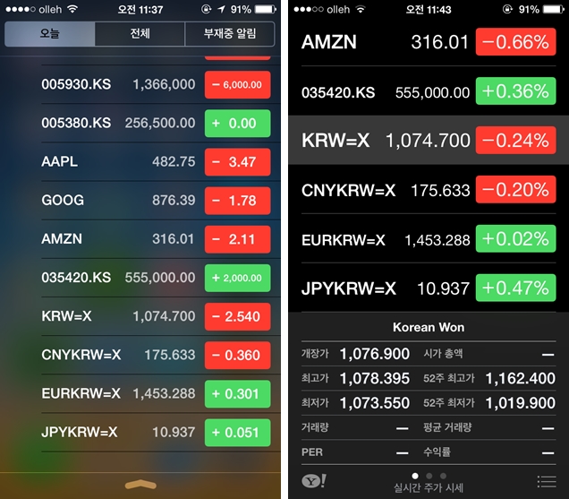 iOS 알림 센터에서 환율, 금, 은 시세 조회방법